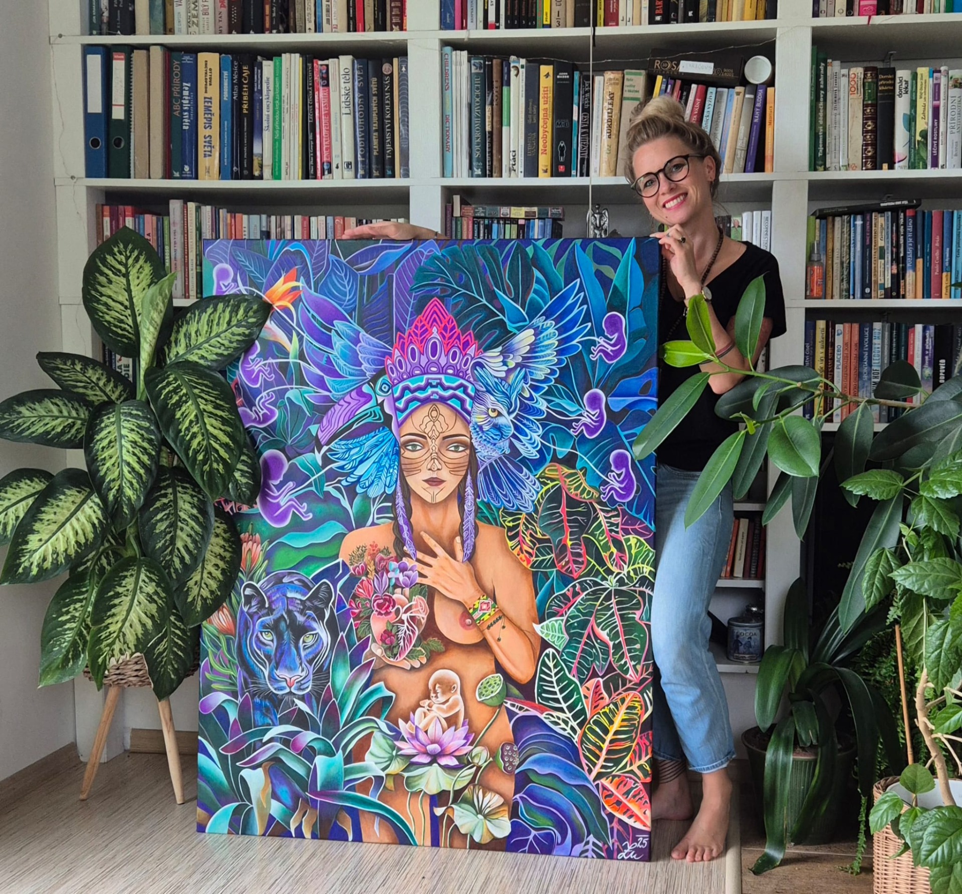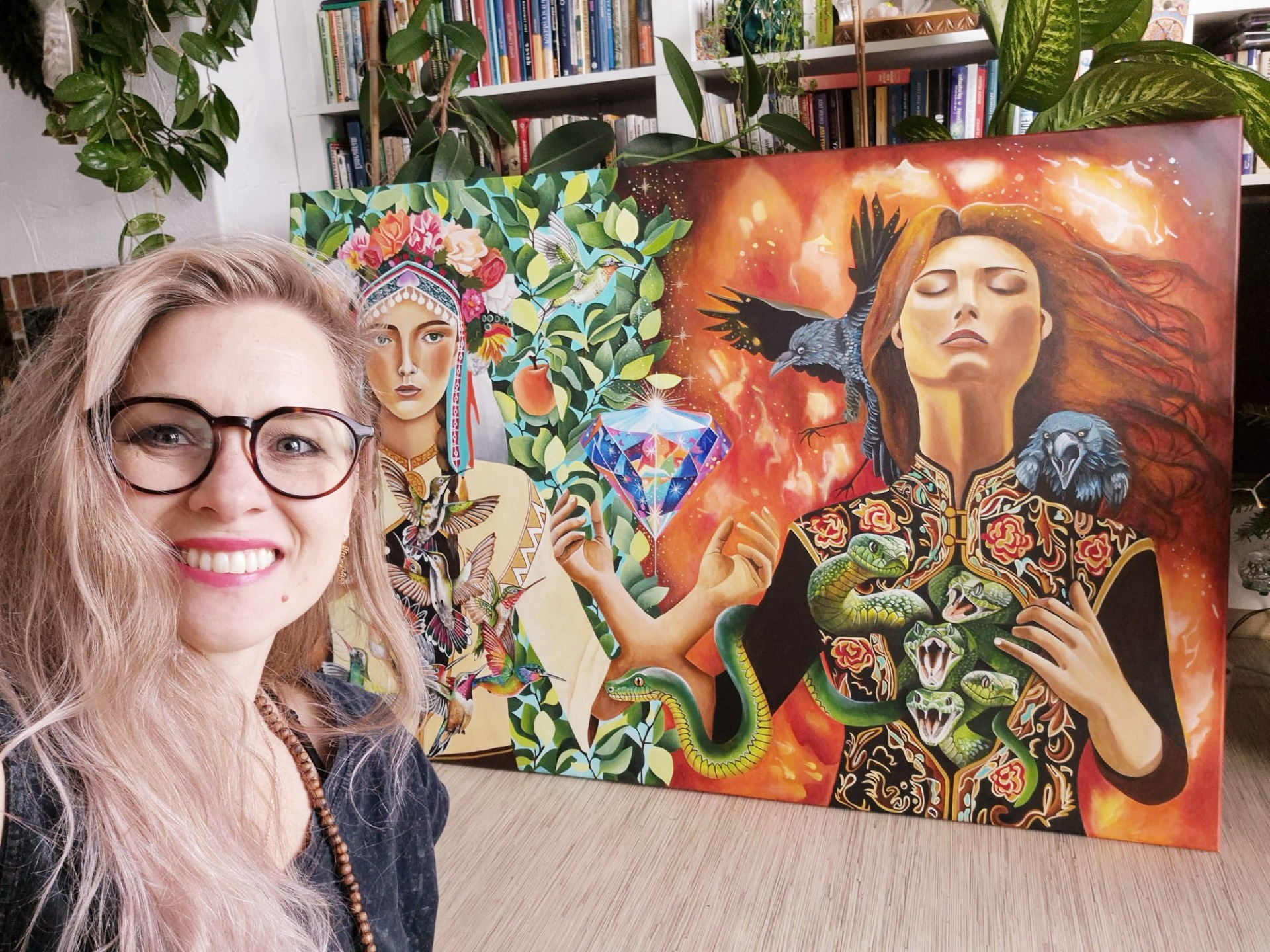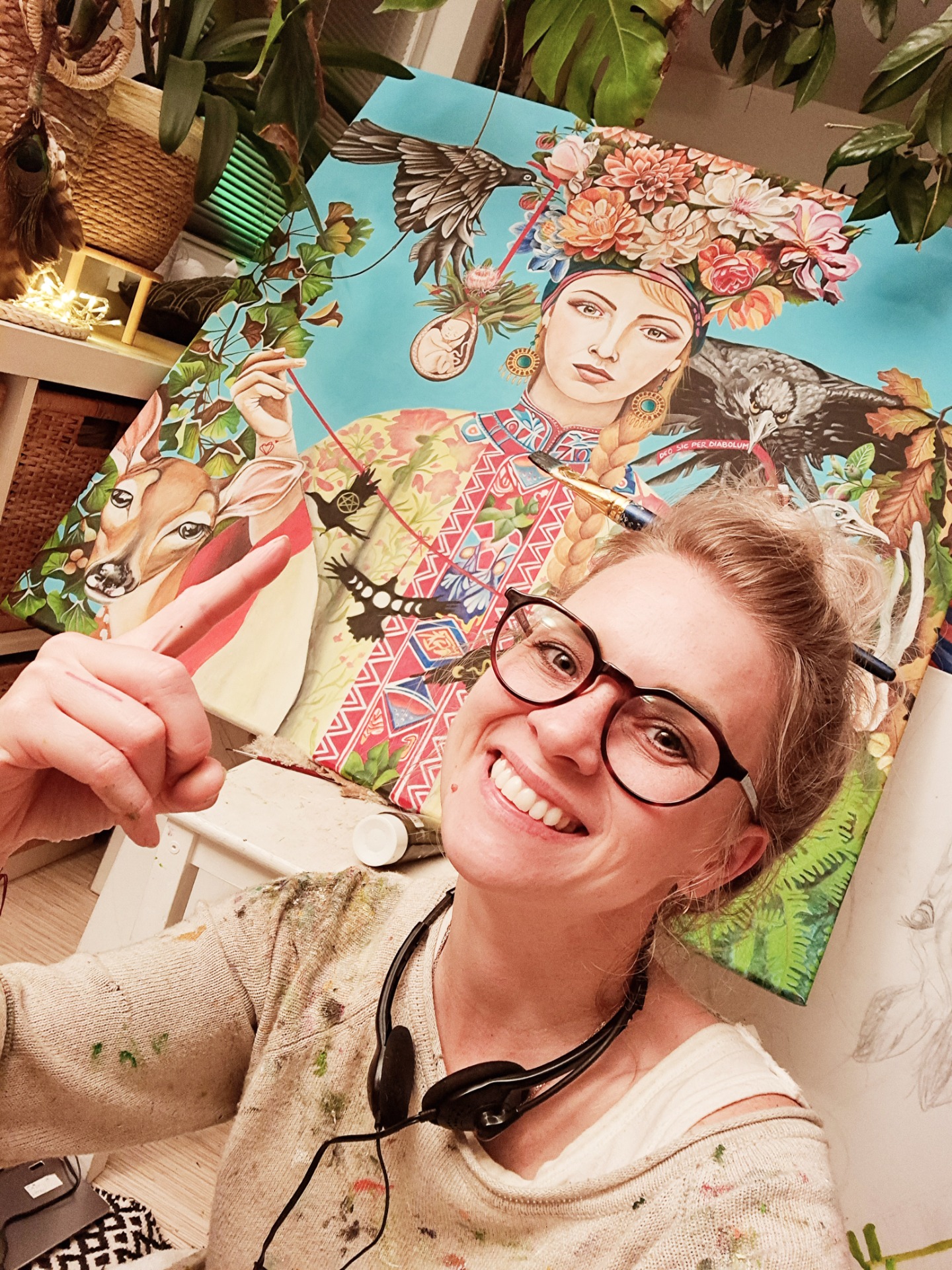 Na obrazech velmi často a ráda vyobrazuji rostliny a zvířecí průvodce. Dlouhou dobu jsem nerozuměla, proč tuhle nutkavou potřebu mám a co mi chtějí říct. I když jsem nechápala poselství těchto symbolických bytostí, intenzivně jsem cítila, že potřebuji být v jejich přítomnosti, v jejich energii. Postupně jsem se začala učit jak zvířecí průvodce vnímat a jak následovat jejich vedení, podporu a moudrost.