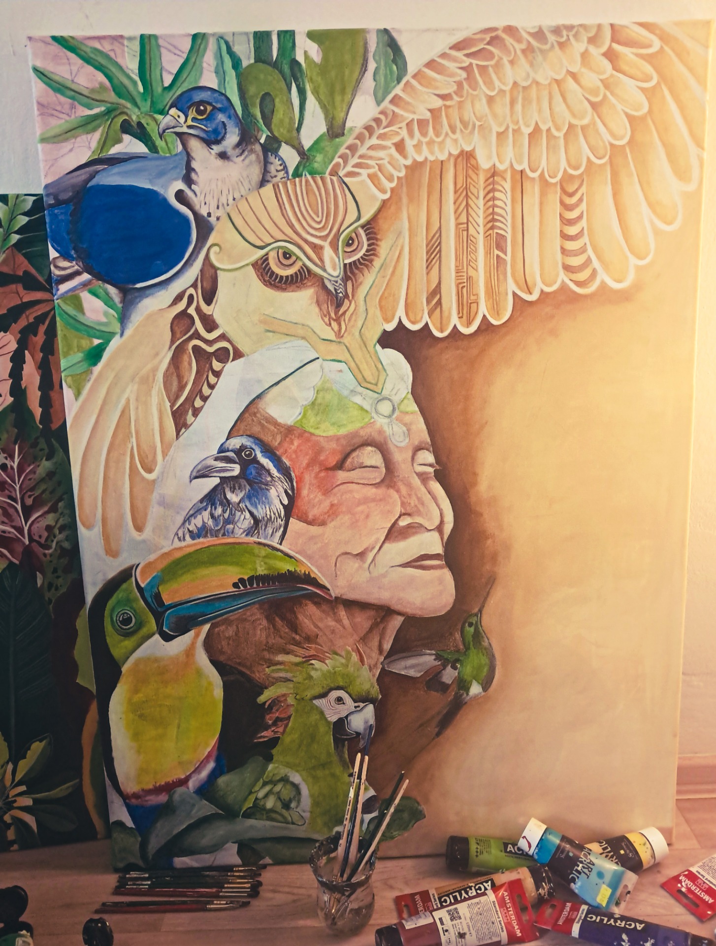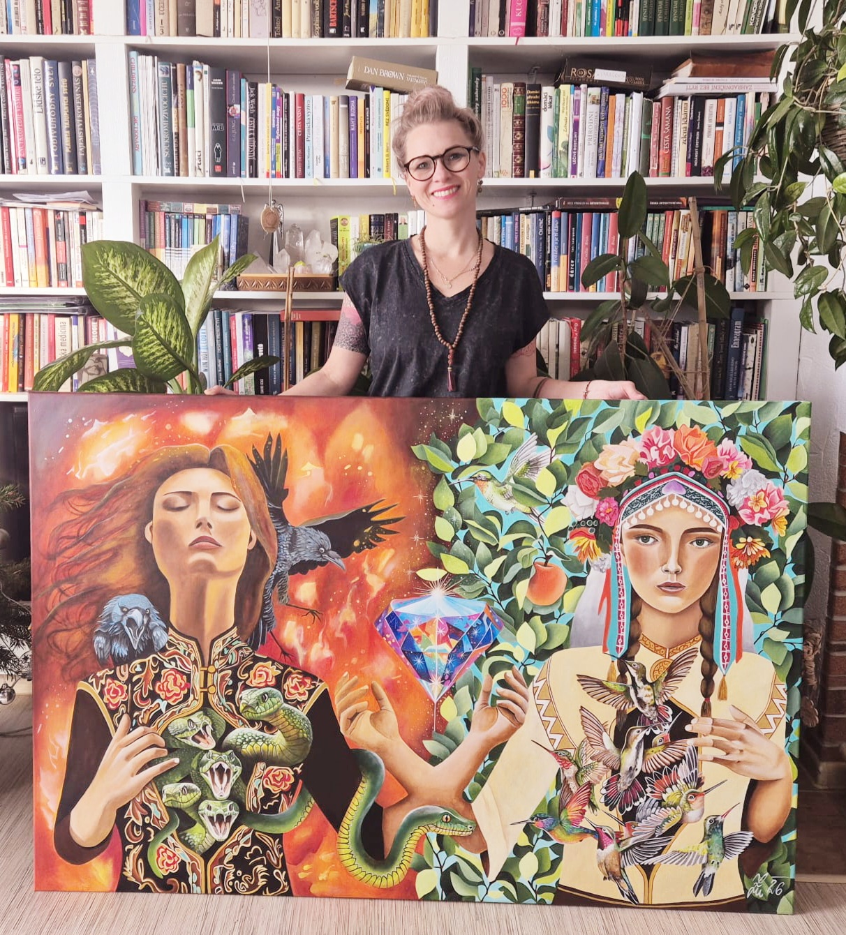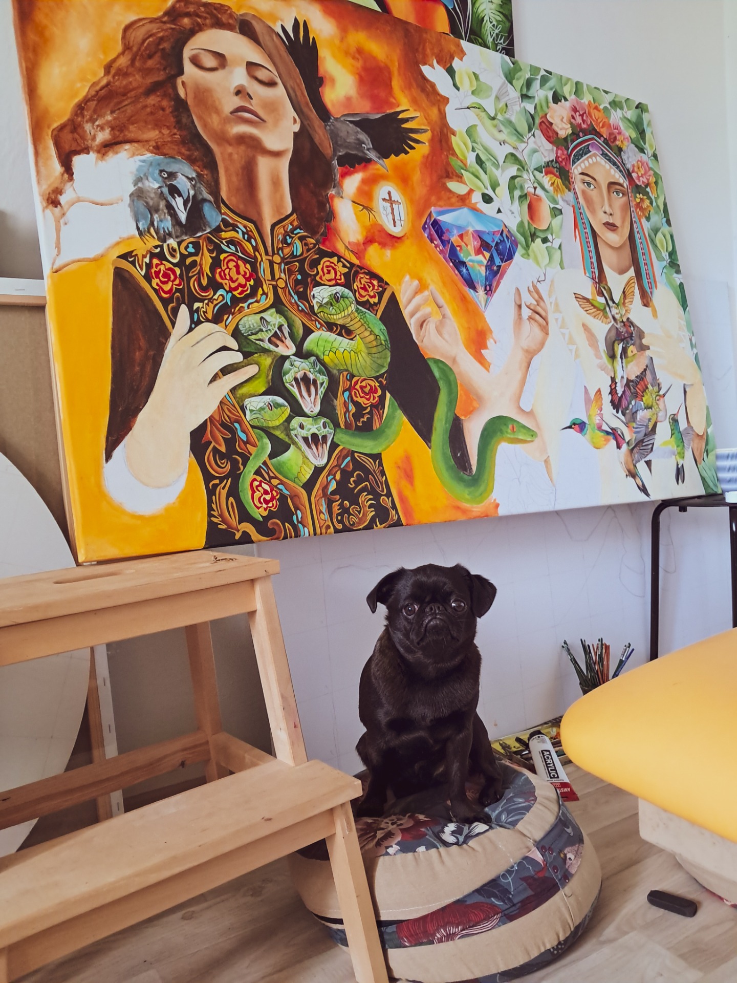Na obrazech velmi často a ráda vyobrazuji rostliny a zvířecí průvodce. Dlouhou dobu jsem nerozuměla, proč tuhle nutkavou potřebu mám a co mi chtějí říct. I když jsem nechápala poselství těchto symbolických bytostí, intenzivně jsem cítila, že potřebuji být v jejich přítomnosti, v jejich energii. Postupně jsem se začala učit jak zvířecí průvodce vnímat a jak následovat jejich vedení, podporu a moudrost.